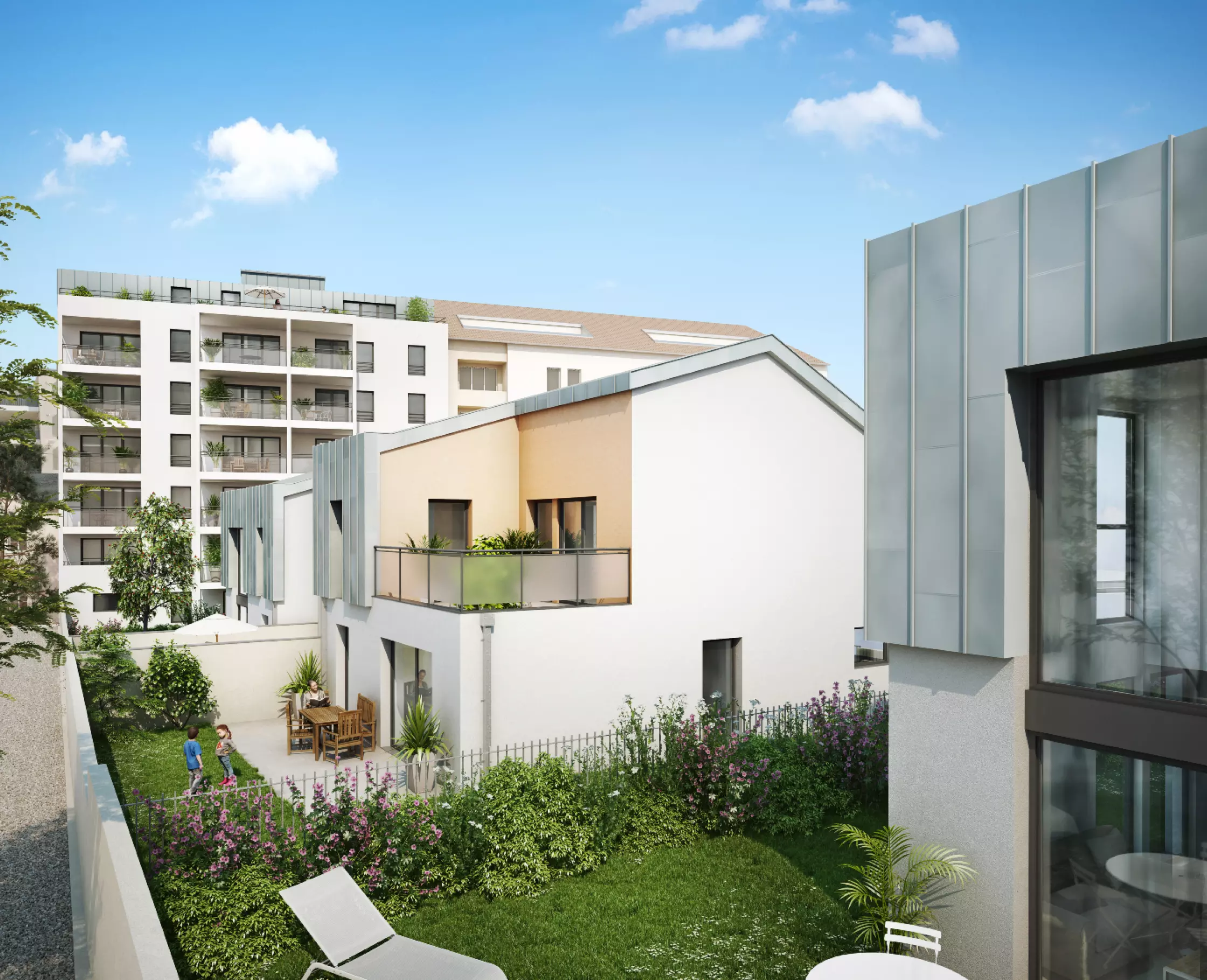 Situé au 180 avenue Franklin Roosevelt à Bron, le 180 se pare d’un style contemporain avec des matériaux sélectionnés pour leur aspect qualitatif et durable : parement pierre en façade, toit en zinc gris naturel, balcons et loggias, menuiseries en aluminium laqué... Habiter en maison au calme côté jardin, ou en appartement, les copropriétaires ont le choix, dans la modernité.