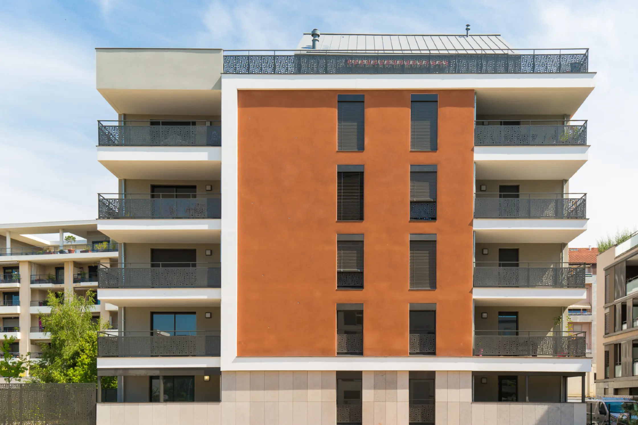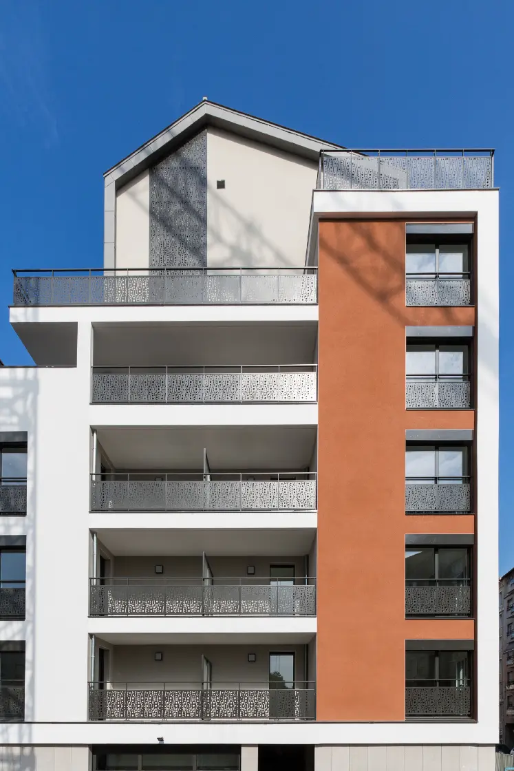 Au sein d’un quartier aux airs de petit village tranquille, le Faubourg se remarque par ses bandeaux verticaux et ses attiques qui donnent une impression de maison sur le toit. La qualité des serrureries distingue l’immeuble dans le quartier, tout en permettant aux habitants de préserver leur intimité.