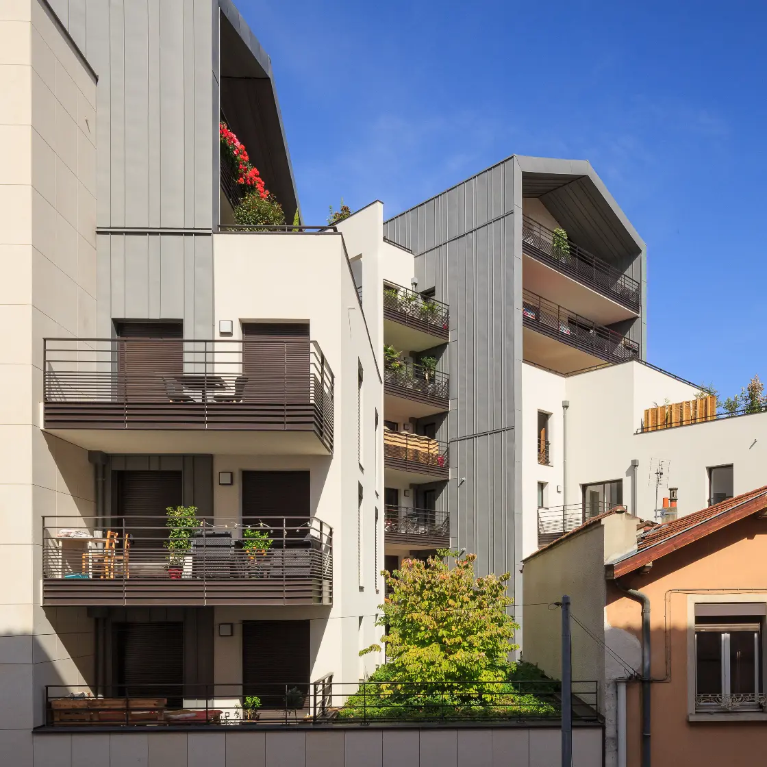 A quelques pas de la gare de Vaise, et à cheval entre la rue Masaryk et la rue Chinard, le Jardin Saint Pierre propose de multiples orientations et un vaste choix de terrasses en plein ciel ou en façade. L’immeuble est à la fois sobre, épuré, et moderne grâce à ses décrochements de façades.