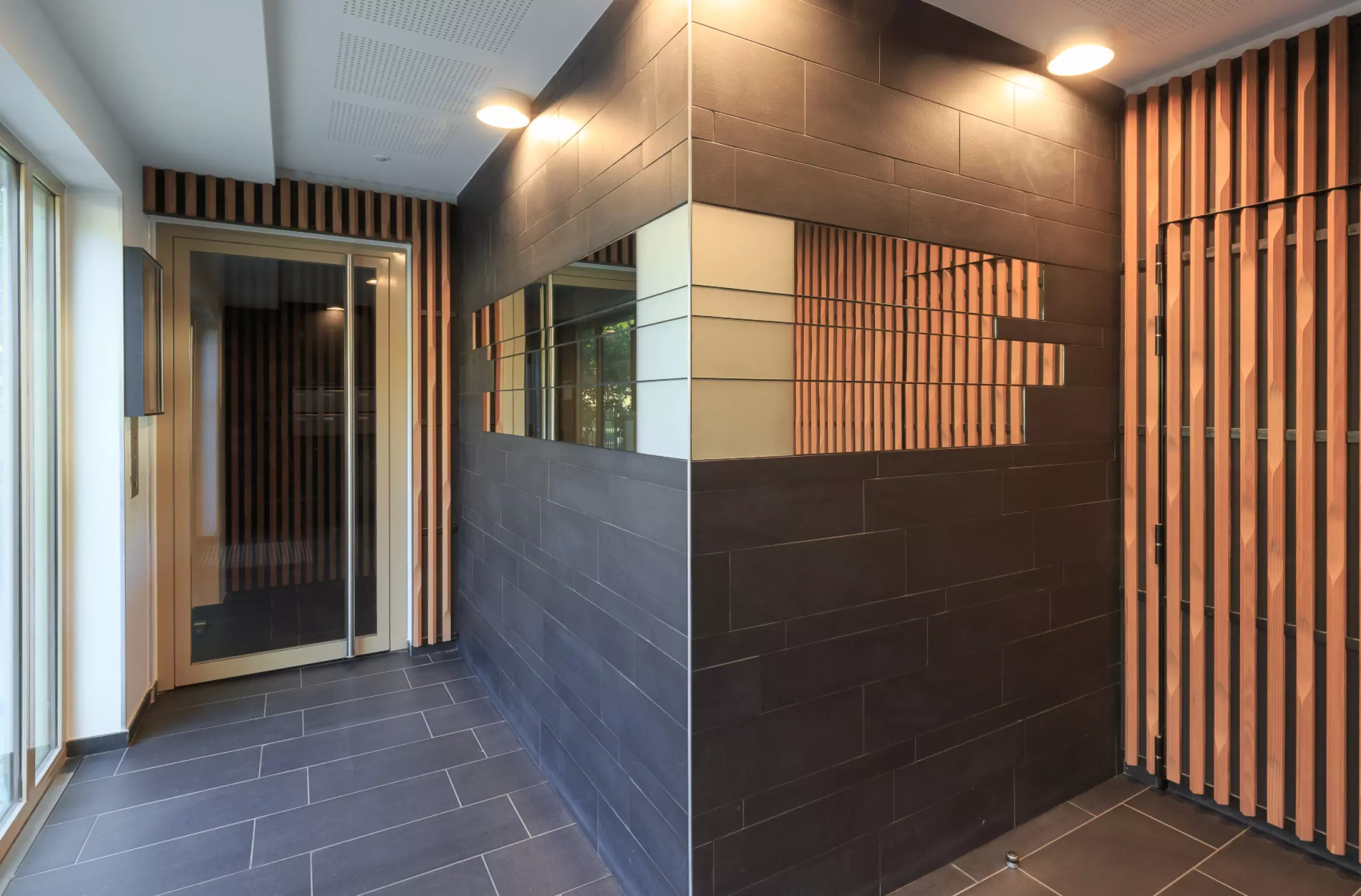 Aux portes de Lyon, à l'arrêt de tram Desgenettes, l'immeuble L'Orée montre son profil discret et élancé. L'architecture raffinée, l'équilibre de ses volumes, l'habillage en parement de pierres contribuent à donner à l'Orée sa qualité institutionnelle. C'est aussi le siège de notre entreprise.