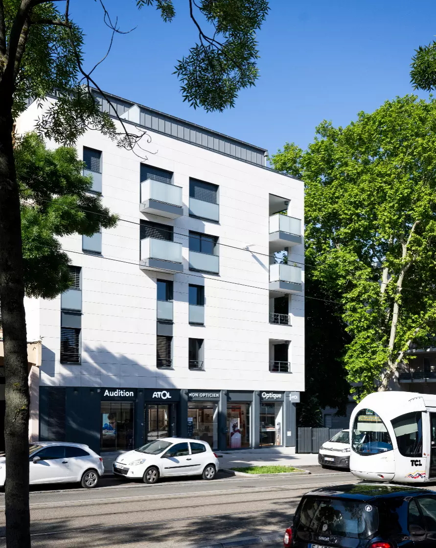 Le 130, situé en plein coeur de Bron, est un immeuble de 26 appartements et trois niveaux de sous-sols. Les appartements vont du T1 au T5, et tous les T2 et plus ont accès à de vastes balcons, terrasses ou loggias.