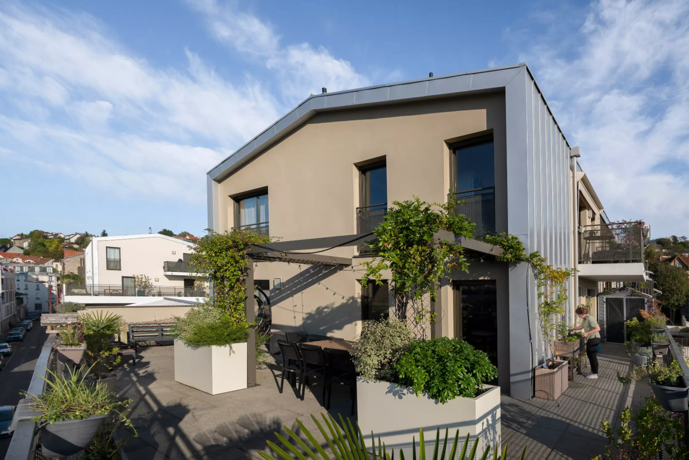 Les immeubles sont en R+4, se fondant ainsi dans les maisons alentours du début du quartier des Coteaux, très prisé sur la commune. Un grand jardin, à l'arrière de la copropriété, assure le calme et la sérénité. Aux étages supérieurs, de belles vues sur le vallon de Cachan et l'aqueduc romain.